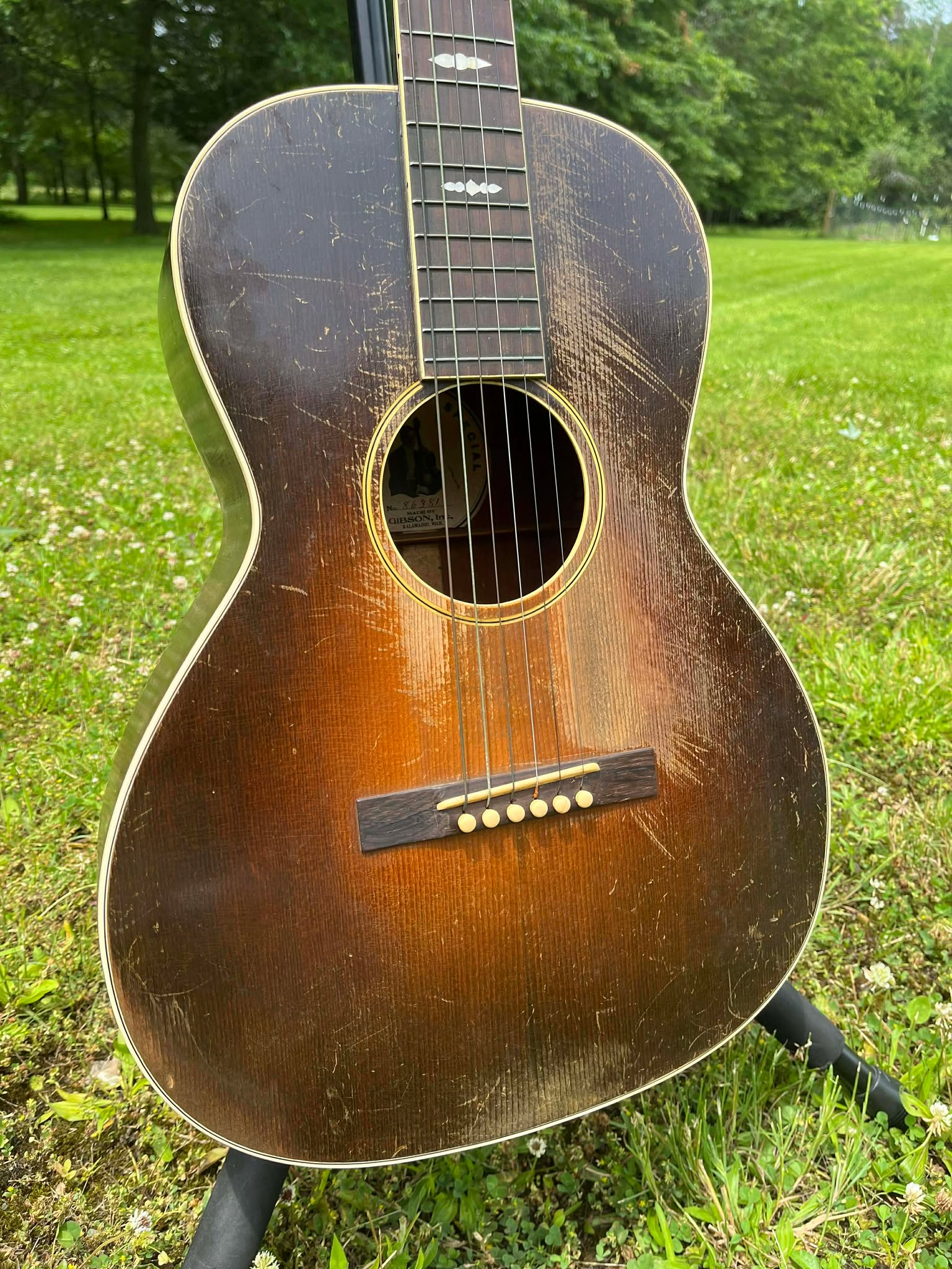 Edgewater Guitars specializes in vintage Gibson acoustic authentication and purchasing throughout the Midwest. Our comprehensive knowledge of Nick Lucas dating—from elevated pickguard verification to ornate inlay assessment—ensures accurate assessments that reflect your guitar's true age, historical significance, and value.