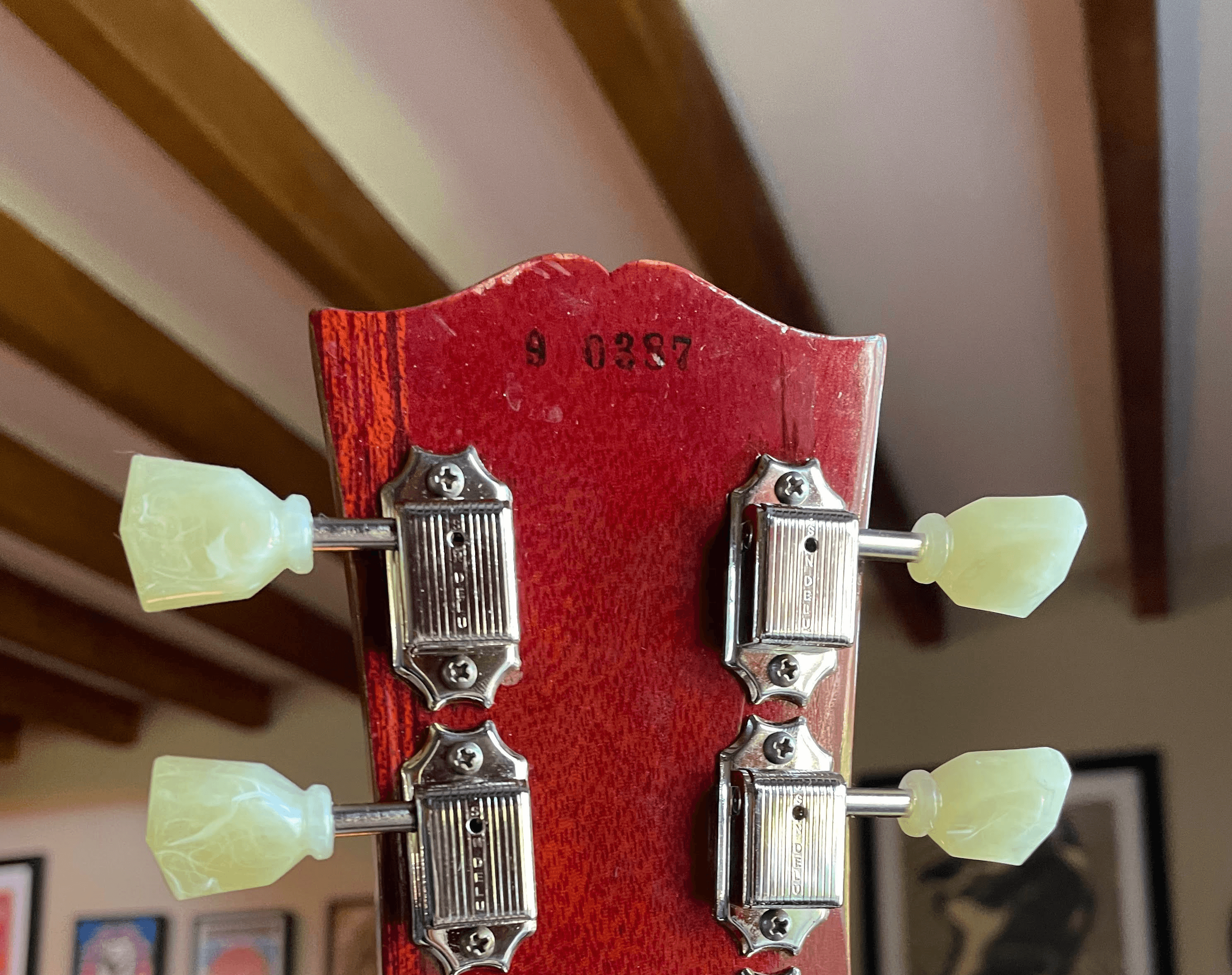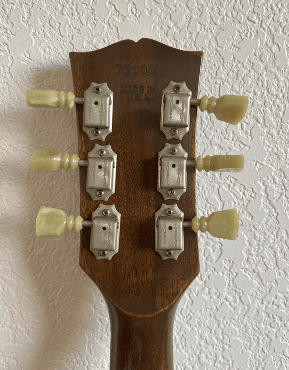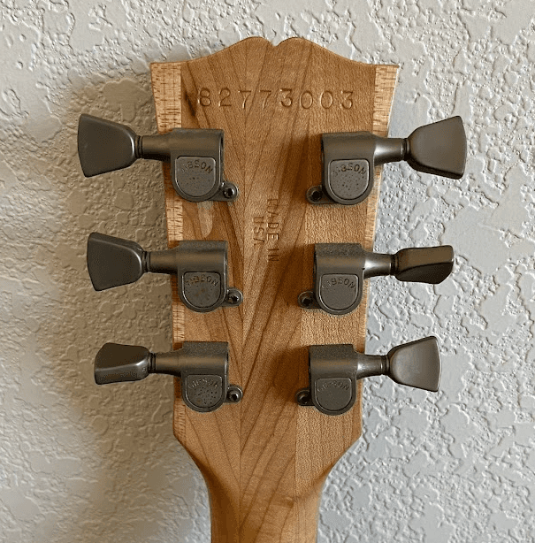 The first crucial step in dating your Les Paul is locating and correctly reading the serial number. On Gibson Les Pauls, the serial number is located on the back of the headstock.